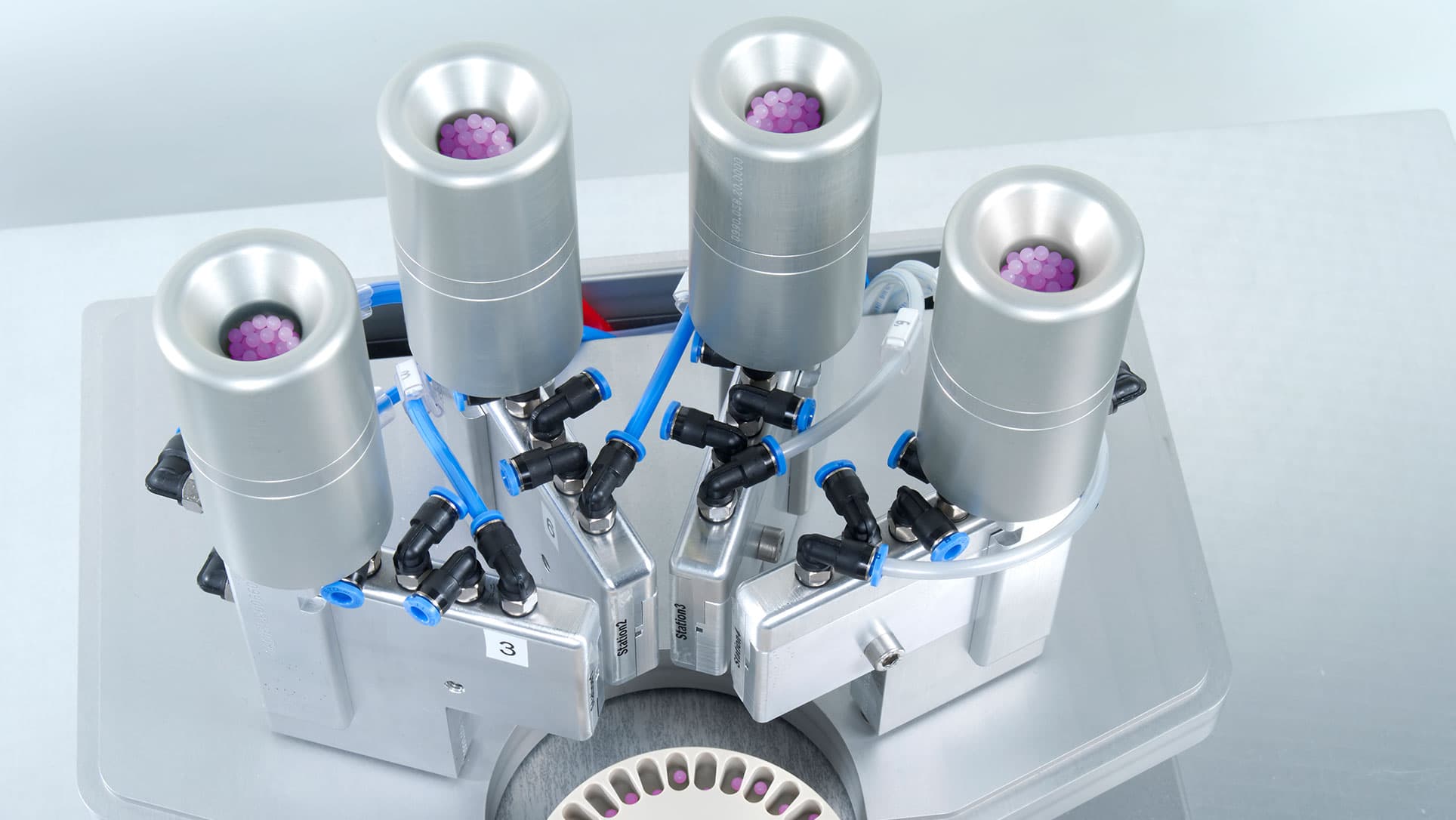 For the handling of lyophilisates, Harro Höfliger offers a unique automated solution – the Lyo Bead Dispenser. The freeze-dried pellets are safely conveyed and accurately dosed via air flow.