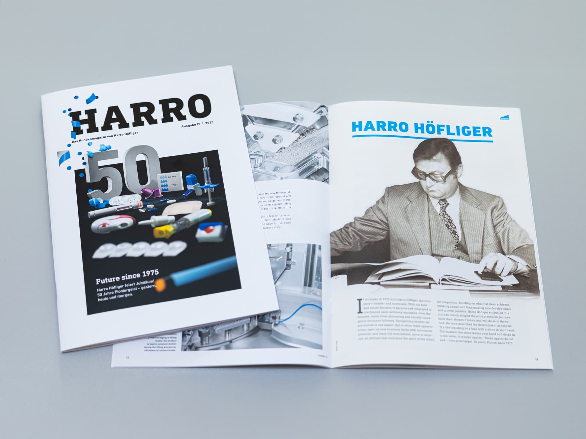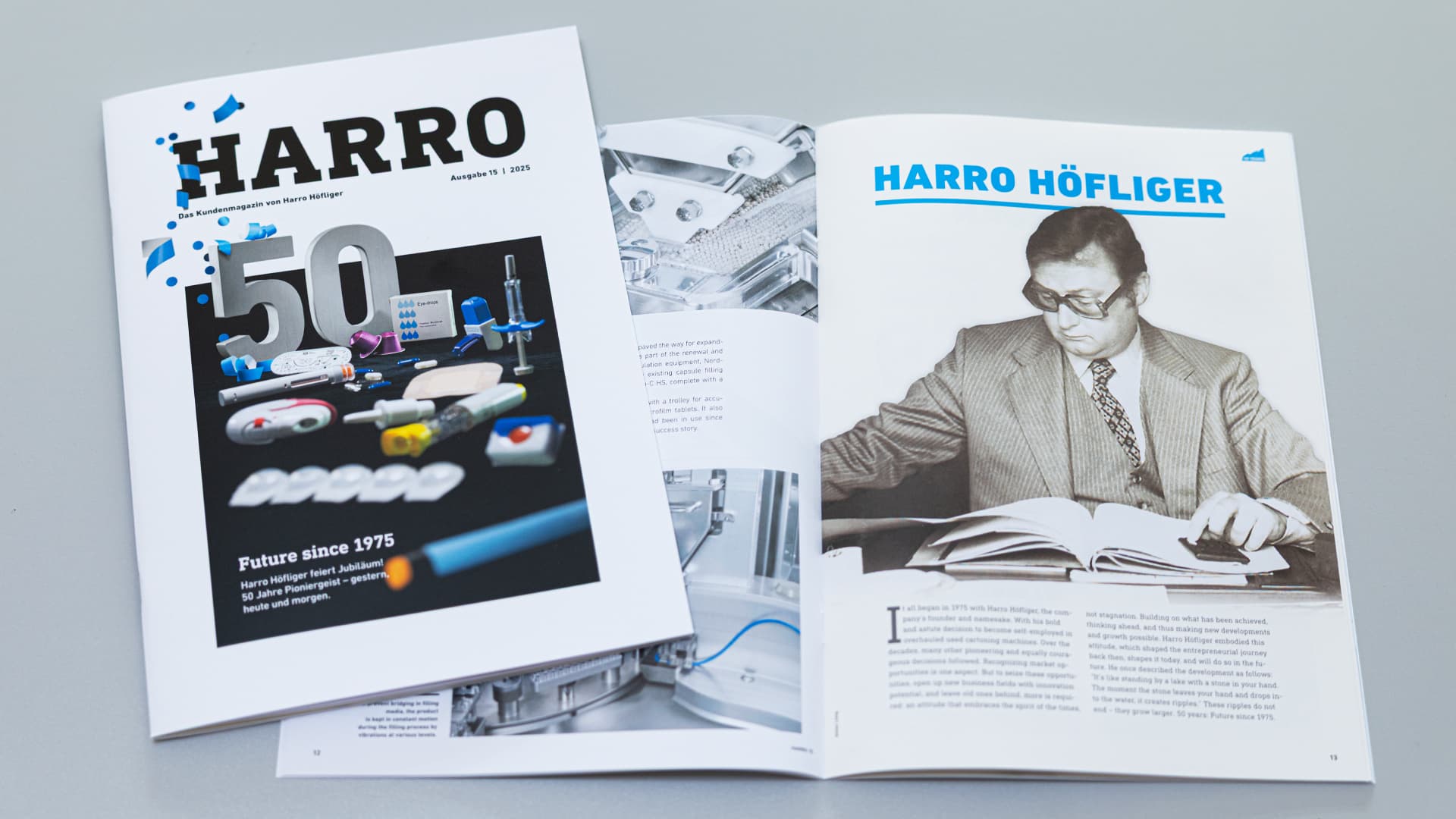 Under the motto “Future since 1975,” the new issue of our HARRO magazine looks back on five decades of company history and traces how Harro Höfliger has developed into a leading technology partner for the pharmaceutical industry.
