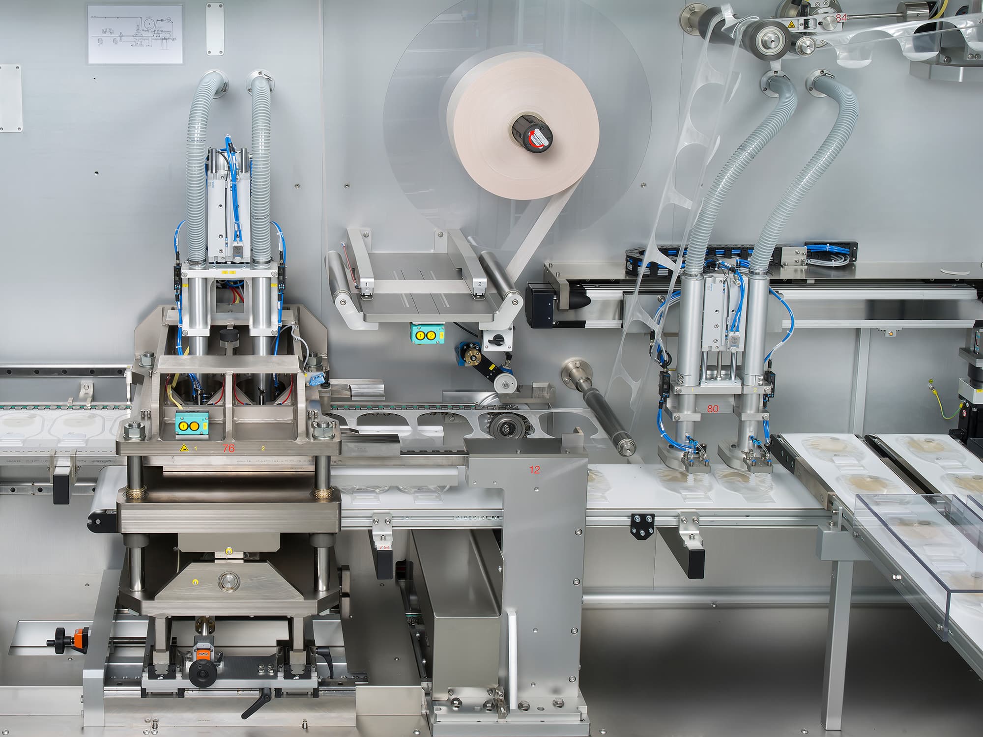 Geschlossene oder offene Beutel, einteilige Systeme oder zweiteilige, mit High-Tech-Filter, mit Sensor als „Frühwarnsystem“ bei einem Leck. Bei allen Unterschieden haben Ostomiesysteme eins gemeinsam: Siegeln ist einer der zentralen Prozesse. Sowohl bei der Verbindung der Produktlagen als auch beim Fixieren weiterer Elemente wie Hautschutzplatte, Rastring, Lasche und Filter. Hierfür setzen wir abgestimmte Verfahren ein, die Siegelqualität wird in den jeweiligen Verarbeitungsschritten durch Kamerakontrolle im laufenden Prozess geprüft.