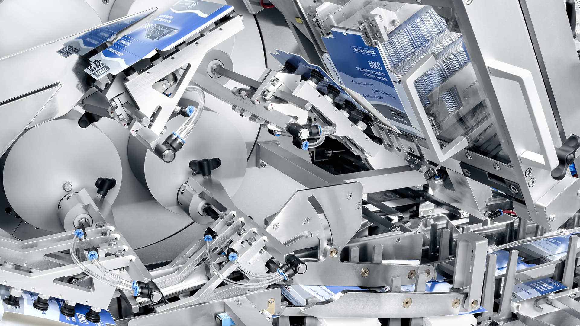 Produktoriginale perfekt geschützt und präsentiert: Mit Technologien für pharmazeutische Medien und medizinische Devices, für unterschiedlichste Produkte in Faltschachteln. Und – Stichwort End-of-Line – für versandfertige Gebinde.